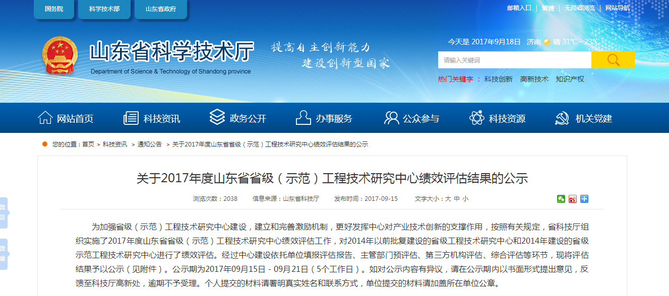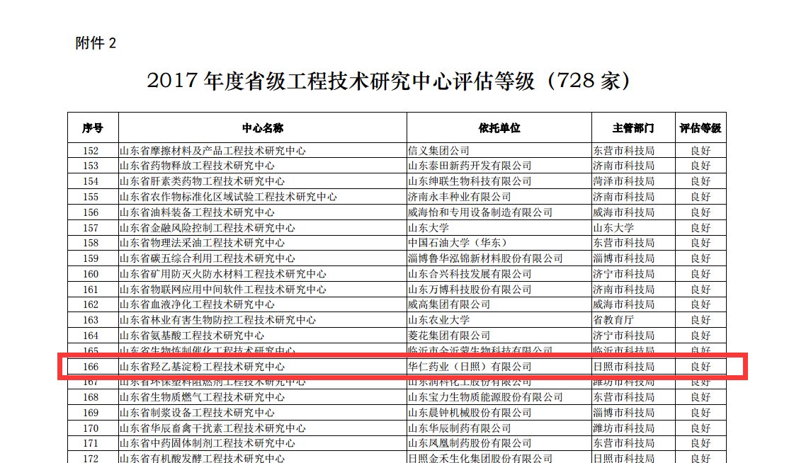 9月15日,山東省科學(xué)技術(shù)廳對(duì)2017年度山東省省級(jí)(示范)工程技術(shù)研究中心績效評(píng)估結(jié)果進(jìn)行了公示,由華仁藥業(yè)(日照)有限公司籌建的山東省羥乙基淀粉工程技術(shù)研究中心績效評(píng)估等級(jí)結(jié)果良好,順利通過評(píng)估進(jìn)入公示,本次公示期為2017年9月15日-9月21日(5個(gè)工作日)。