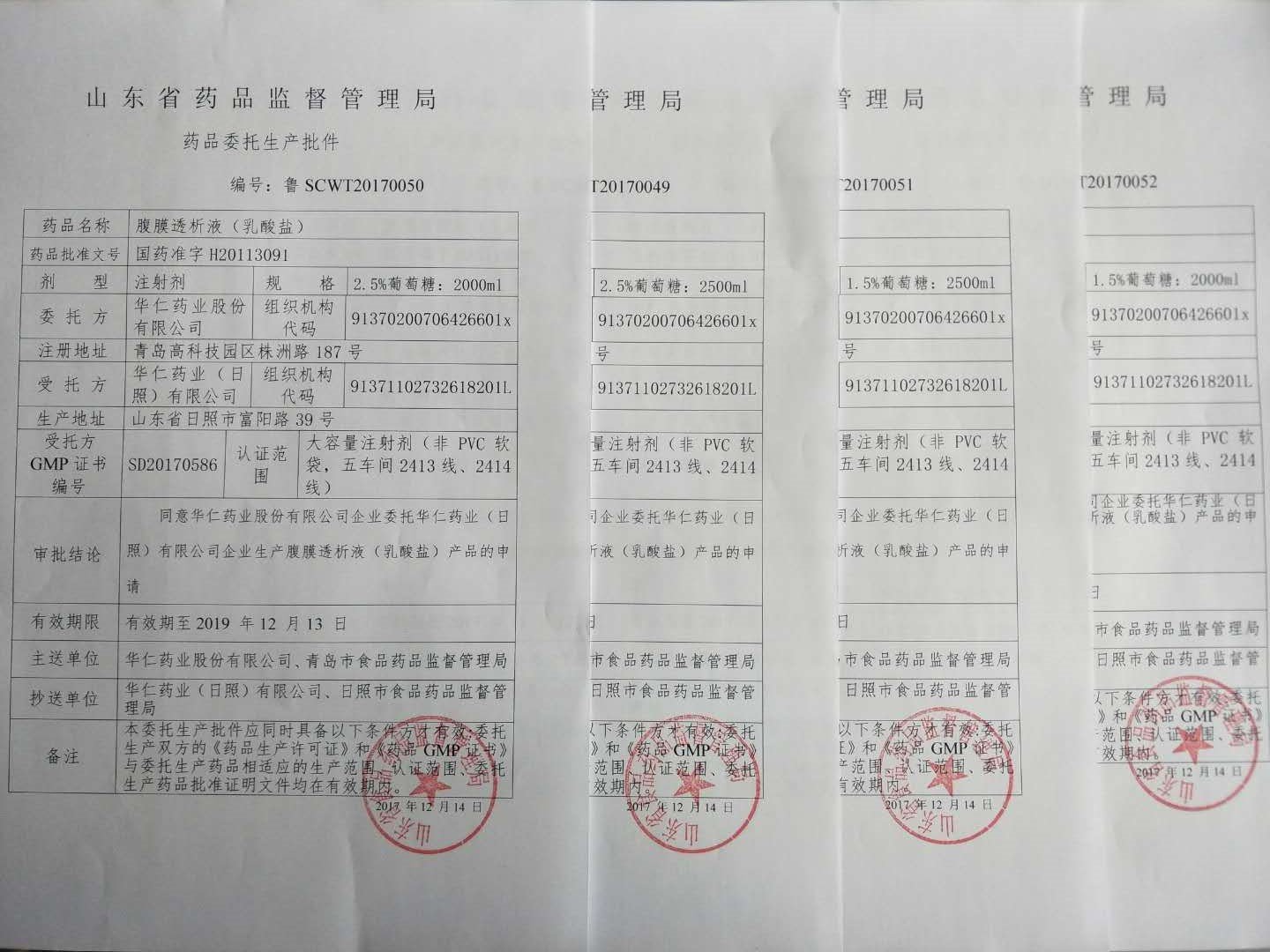 12月14日,經(jīng)山東省食品藥品監(jiān)督管理局審批,我公司順利取得委托華仁藥業(yè)(日照)有限公司生產(chǎn)腹膜透析液的委托生產(chǎn)批件,本次是該品種的首次申請(qǐng),有效期限兩年。委托生產(chǎn)品規(guī)包括1.5%G腹膜透析液(乳酸鹽)2000ml、2500ml;2.5%G腹膜透析液(乳酸鹽)2000ml、2500ml。