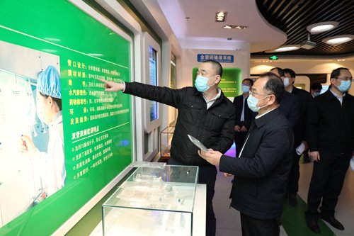 在青島華仁輸液文化博物館,楊董事長向宋書記就公司發(fā)展歷程、疫情防控、生產(chǎn)經(jīng)營、人才引進(jìn)、知識(shí)產(chǎn)權(quán)等工作進(jìn)行了匯報(bào),并對(duì)公司核心產(chǎn)品非PVC雙管雙閥軟袋輸液、腹膜透析液等的關(guān)鍵技術(shù)優(yōu)勢,醫(yī)療器械、醫(yī)用防護(hù)口罩生產(chǎn)情況以及公司在研新產(chǎn)品進(jìn)展情況等內(nèi)容作了重點(diǎn)匯報(bào)介紹。